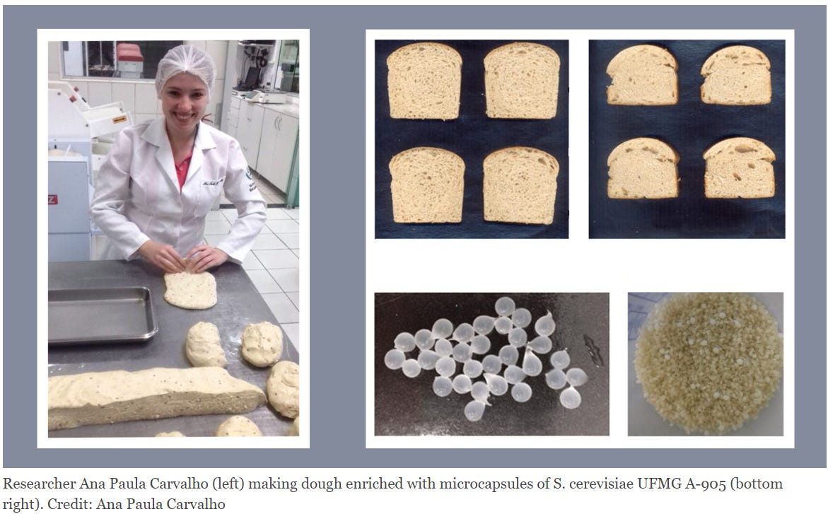 “To assess its potential, the researchers tested and compared three types of bread. The first was fermented with commercial yeast, the second with S. cerevisiae UFMG A-905, and the third with S. cerevisiae UFMG A-905 plus microcapsules containing live S. cerevisiae UFMG A-905.